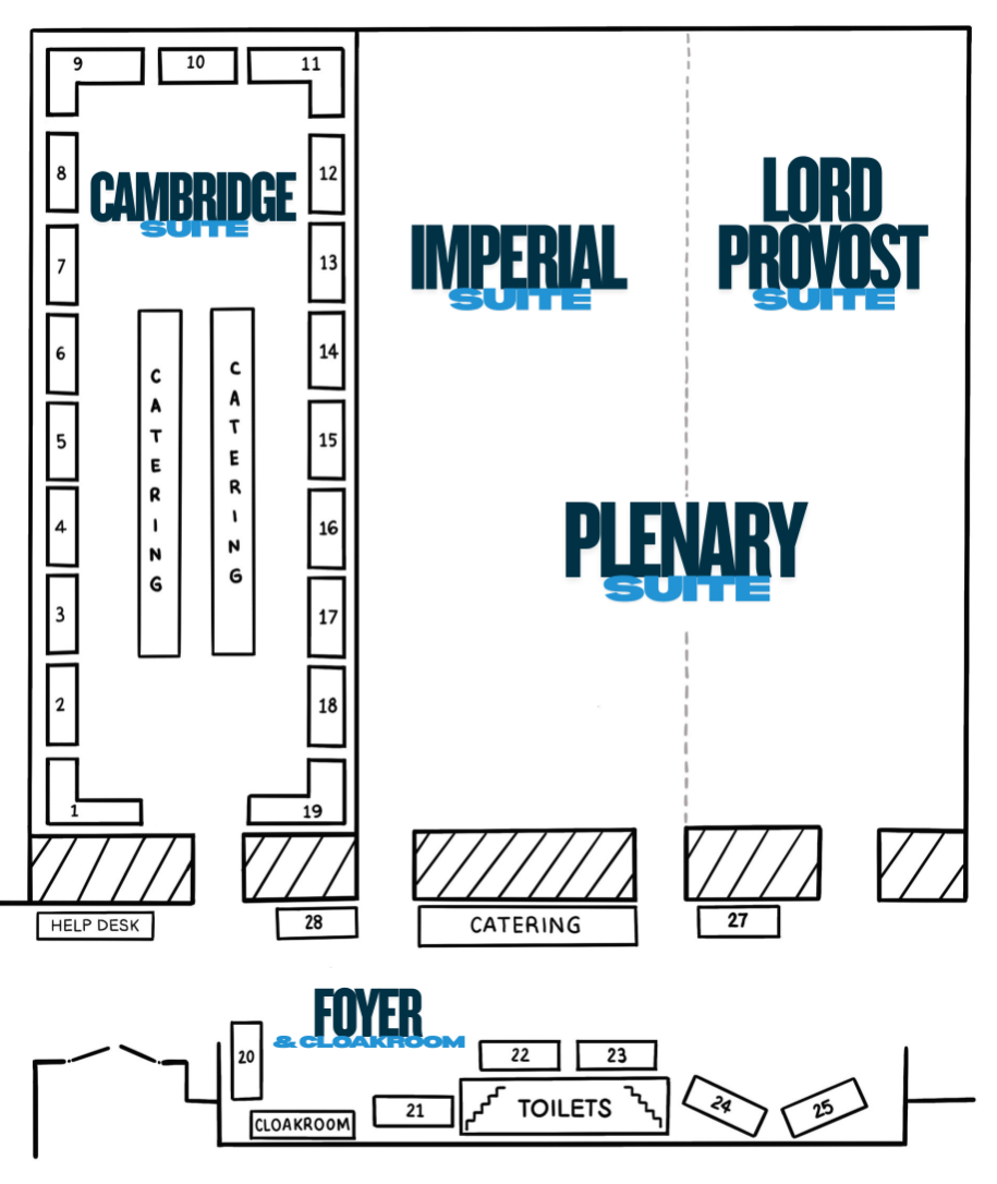 The conference exhibition is located across two sections; the Cambridge suite and the Foyer
